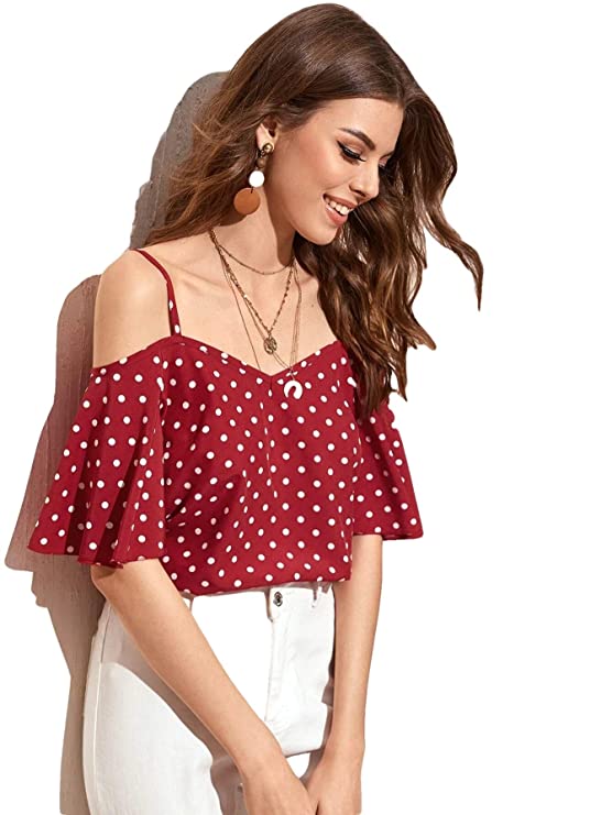 Polka Dot Butterfly Sleeve Off Shoulder Tops