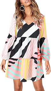Amoretu Women Summer Tunic Dress V Neck Casual Loose Flowy Swing Shift Dresses
